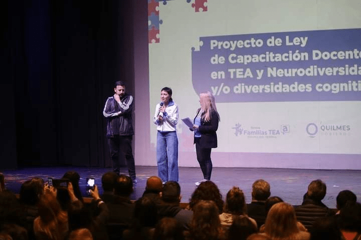 La intendenta de Quilmes, Mayra Mendoza, participó este viernes de la presentación del proyecto de capacitación docente obligatoria en TEA y neurodiversidades, que propuso el senador provincial por Unión por la Patria, Emmanuel González Santalla, que para convertirse en ley cuenta con media sanción del Senado Bonaerense y pasó a la Cámara de Diputados, con el compromiso de que sea tratado en las primeras sesiones luego del receso de invierno.